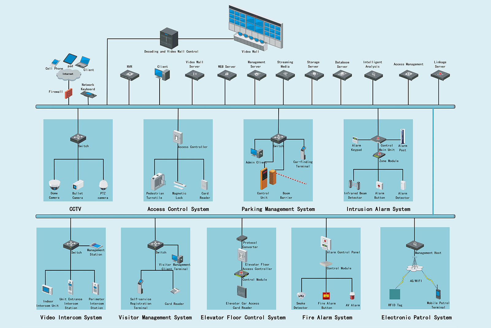 The integrated security system architecture diagram is shown below: